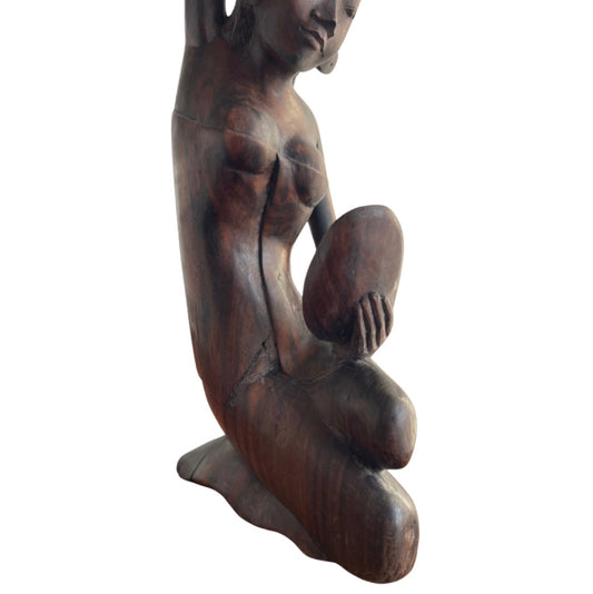 Scultura Balinese in legno di palissandro intagliata a mano.