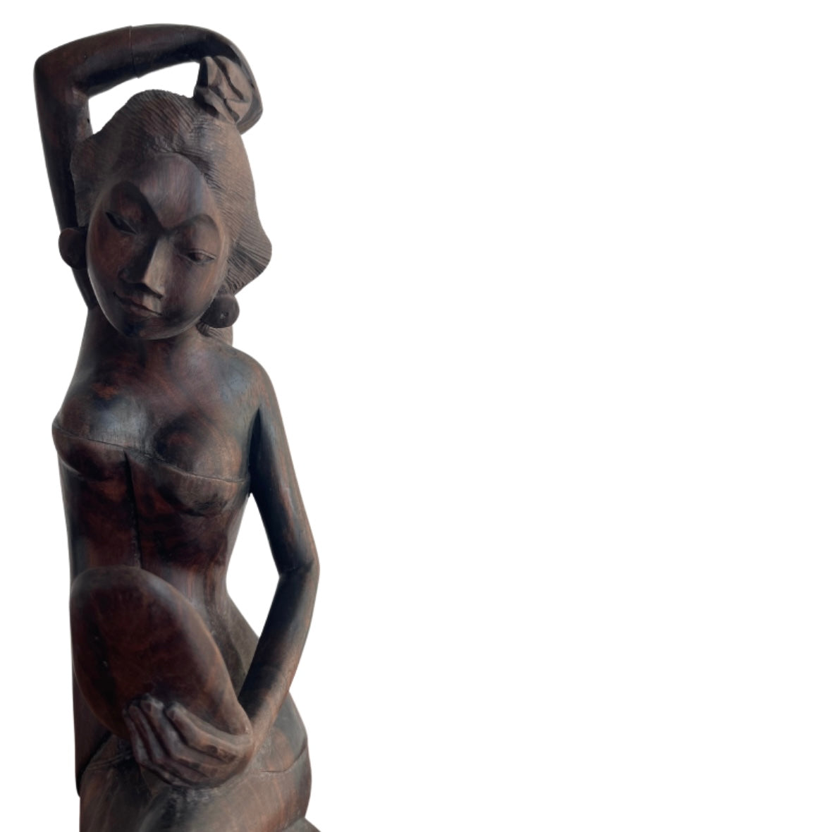 Scultura Balinese in legno di palissandro intagliata a mano.
